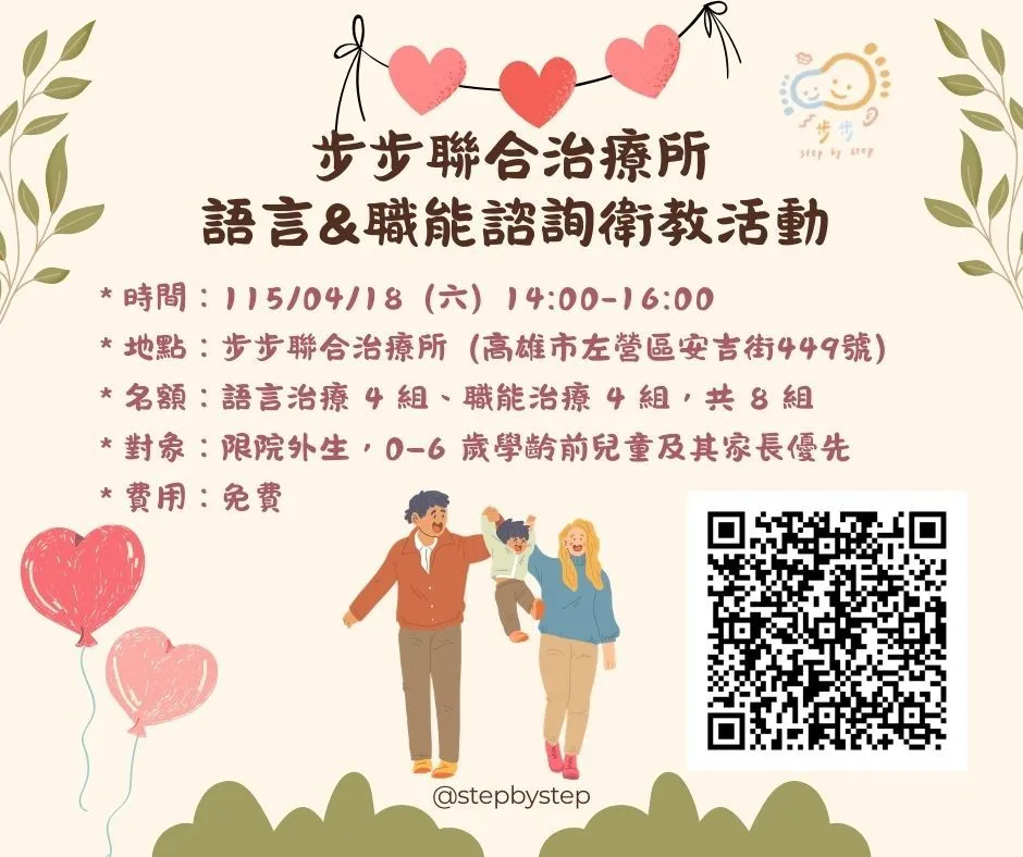 #步步聯合治療所 #語言治療 #職能治療 #高雄語言治療 #高雄職能治療 #左營語言治療 #左營職能治療 #高雄早療 #左營早療 #左營區 #北高 #親子活動 #親子發展 #免費諮詢